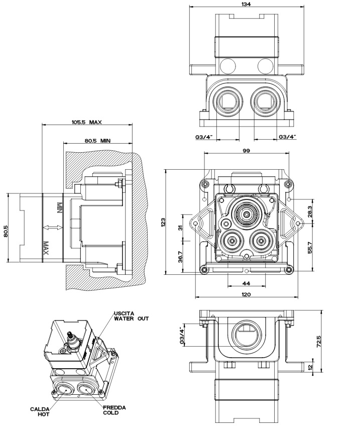 Gessi Element Montażowy Podtynkowy chrom 43281.031 / 43281031