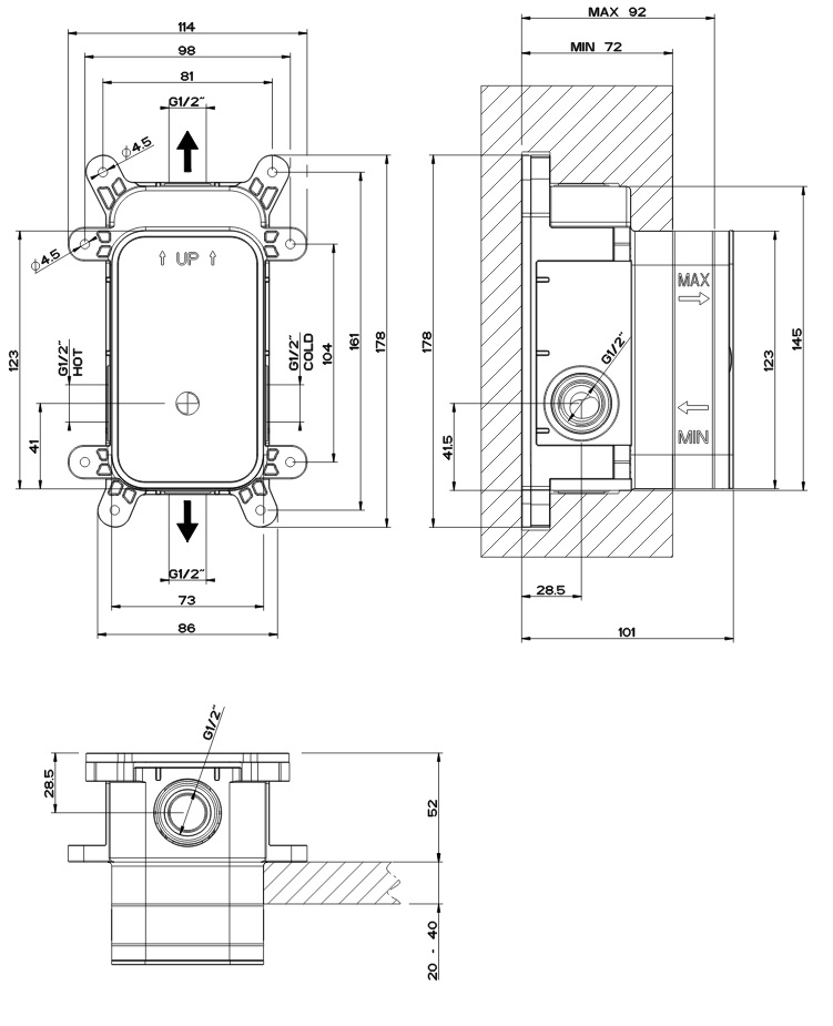 Element podtynkowy do baterii termostatycznej natryskowej.