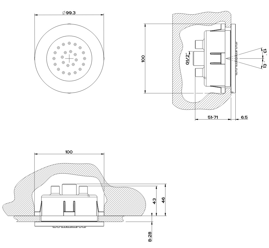 Gessi Cono Dysza Boczna Naścienna Podtynkowa chrom 32982.031 / 32982031