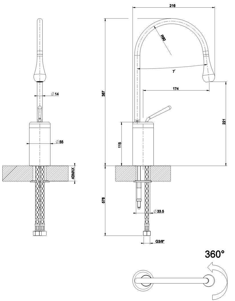 Gessi Goccia Bateria Umywalkowa Jednootworowa chrom 33604.031 / 33604031