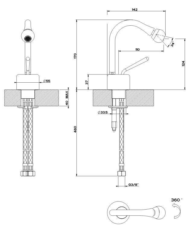 Gessi Goccia Bateria Bidetowa Jednootworowa chrom 33607.031 / 33607031