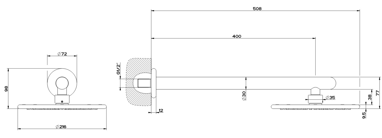 Wysokość deszczownicy: 9,5 mm