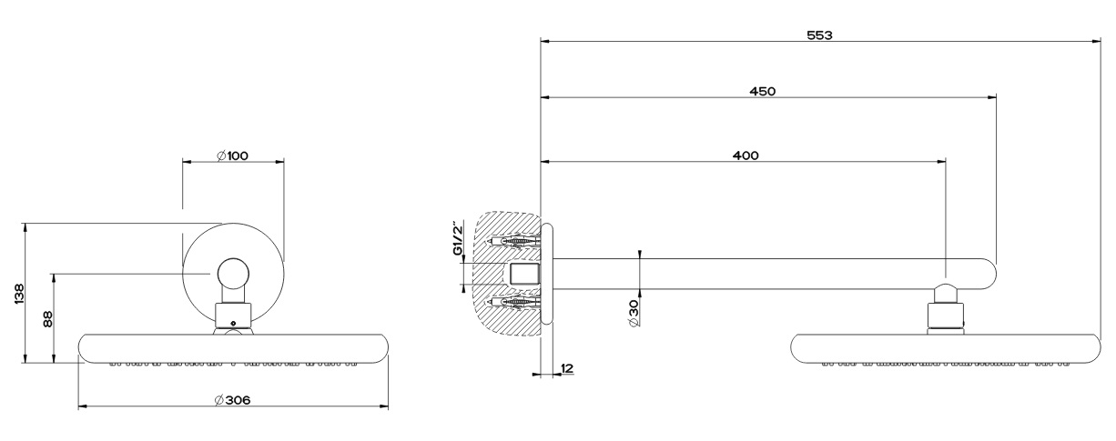 Gessi Goccia Deszczownica z Ramieniem Ścienna chrom 33756.031 / 33756031