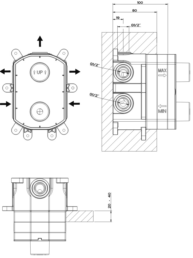 Element podtynkowy do baterii termostatycznej natryskowej.