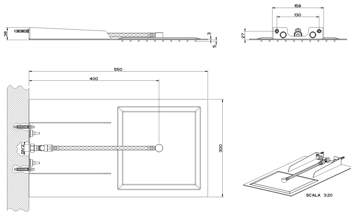 Gessi Tremillimetri Deszczownica ścienna mirror steel 33081.238 / 33081238