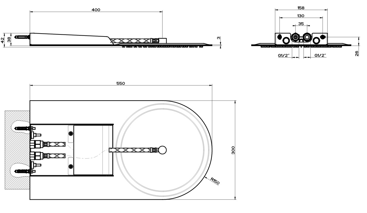 Gessi Tremillimetri Deszczownica ścienna mirror steel 33073.238 / 33073238