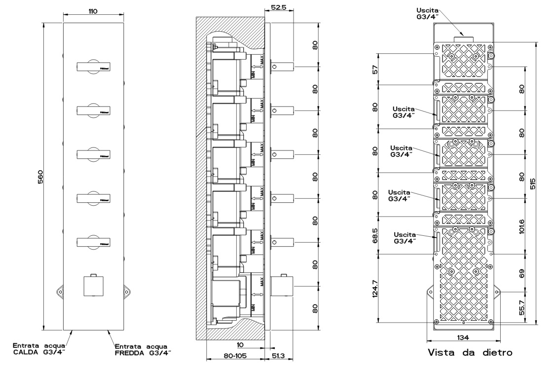 Gessi Rettangolo Bateria Wannowo-natryskowa Termostatyczna Podtynkowa chrom 43030.031 / 43030031Kolor: Chrom