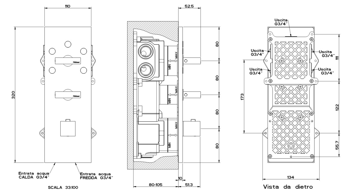 Gessi Rettangolo Bateria Wannowo-natryskowa Termostatyczna Podtynkowa chrom 43032.031 / 43032031