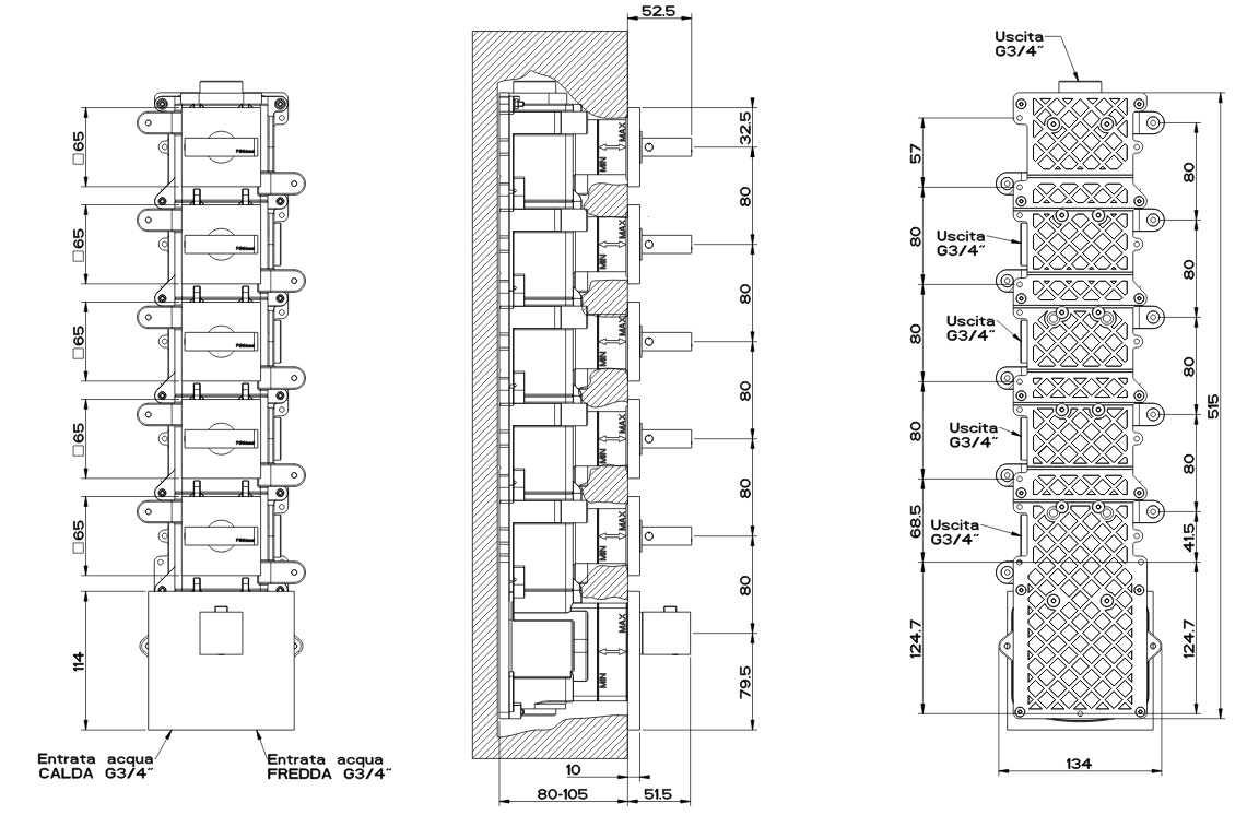 Gessi Rettangolo Bateria Wannowo-natryskowa Termostatyczna Podtynkowa chrom 43220.031 / 43220031Kolor: Chrom