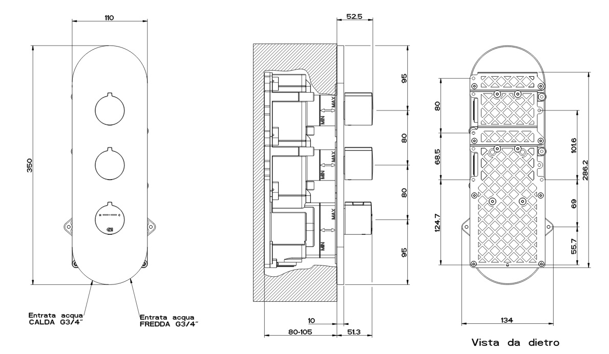 Gessi Tondo Bateria Wannowo-natryskowa Termostatyczna Podtynkowa chrom 43064.031 / 43064031