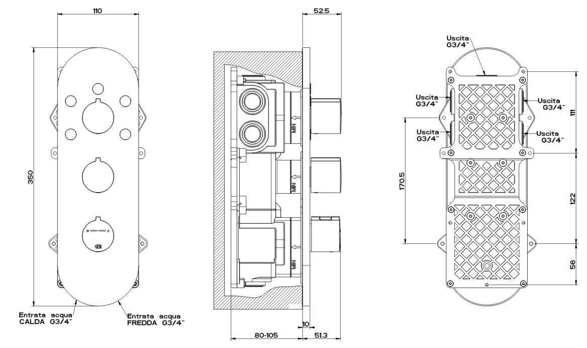 Gessi Tondo Bateria Wannowo-natryskowa Termostatyczna Podtynkowa chrom 43072.031 / 43072031