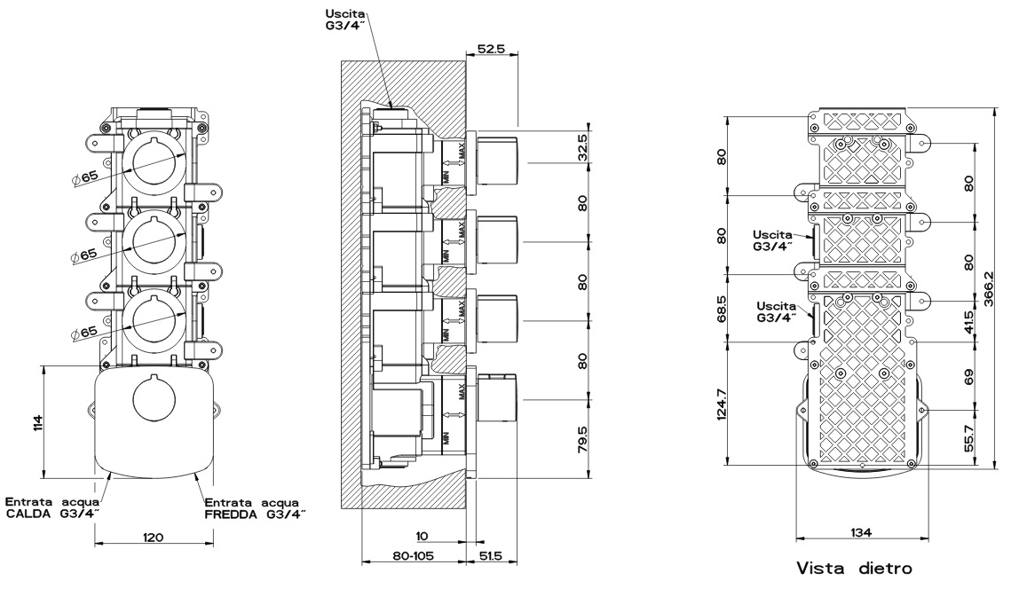 Gessi Tondo Bateria Wannowo-natryskowa Termostatyczna Podtynkowa chrom 43236.031 / 43236031