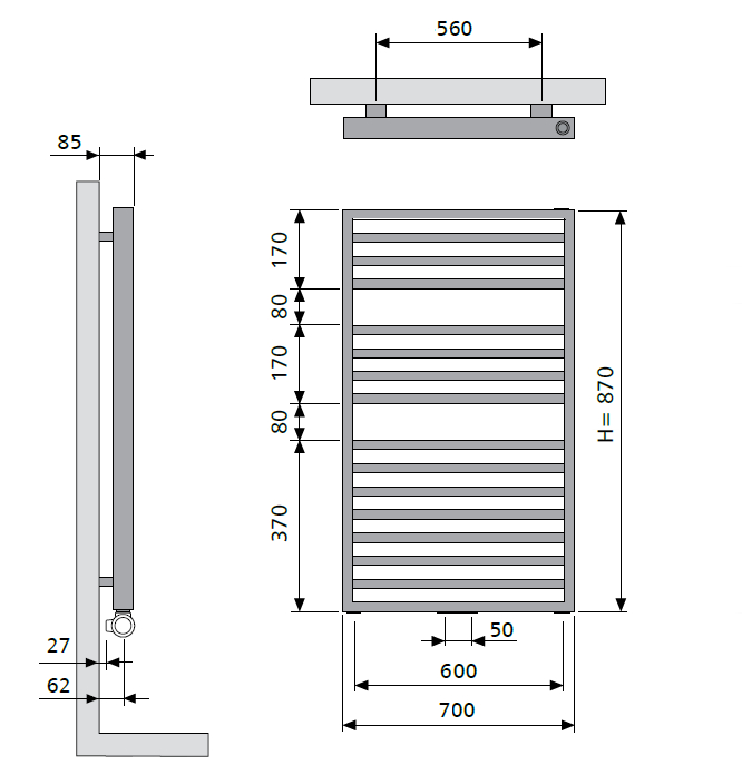 Przyłącze: grzejniki dekoracyjne ARCHE są produkowane zawsze z tym samym zestawem przyłączy 1/2"