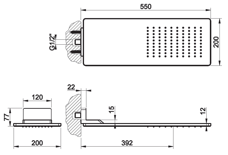 Gessi Ispa Deszczownica ścienna mirror steel 33095.238/ 33095238