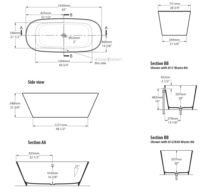 Victoria+Albert Vetralla 2 Wanna Wolnostojąca 165x73 Biała VE2-N-SW-NO