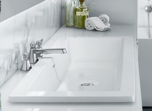 Umywalka wpuszczana w blat. Bez możliwości zamontowania baterii.
