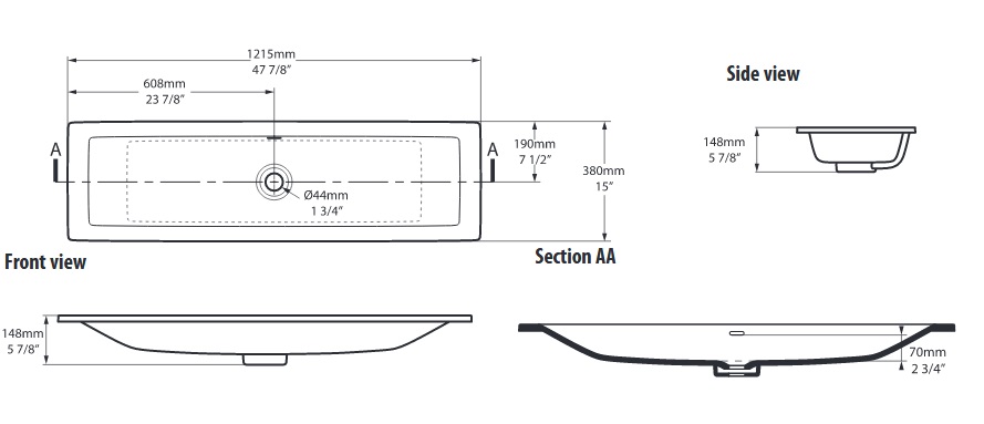 Victoria+Albert Rosendale 122 Umywalka Wpuszczana w Blat 1215x38 Biała DU-ROS-122-IO
