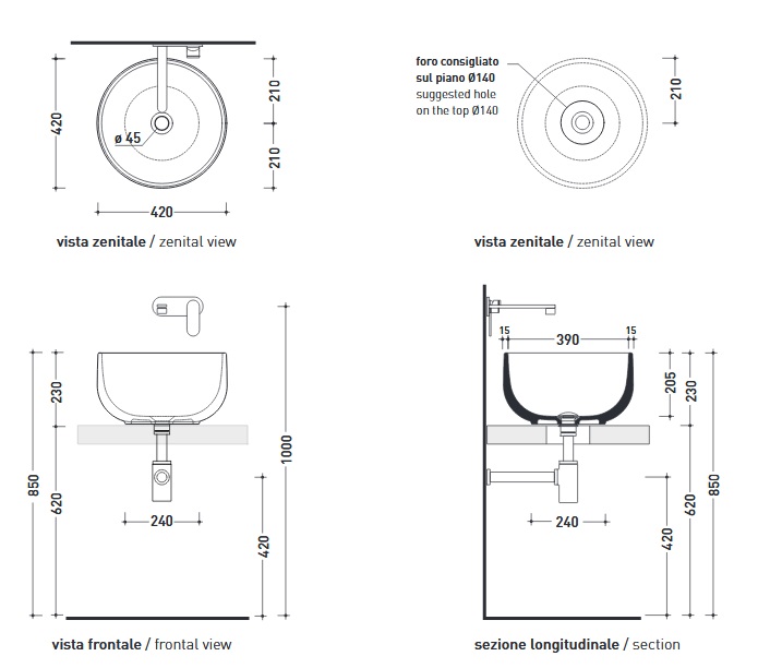 Flaminia Saltodacqua Umywalka stawiana na blat Ø42 biały SD42L
