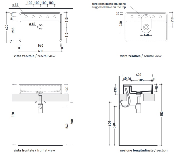 Flaminia Miniwash Umywalka stawiana na blat 60 cm biała MW60PR