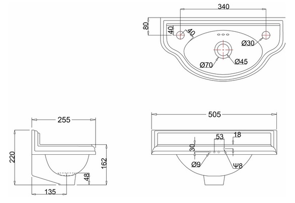 Burlington Curved Cloakroom Umywalka 50,5x25,5 biała P13R