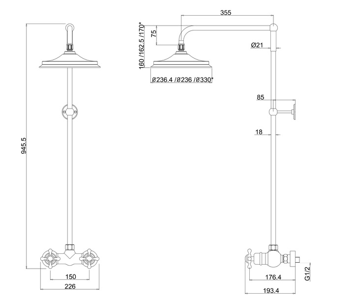 Długość ramienia: 355 mm