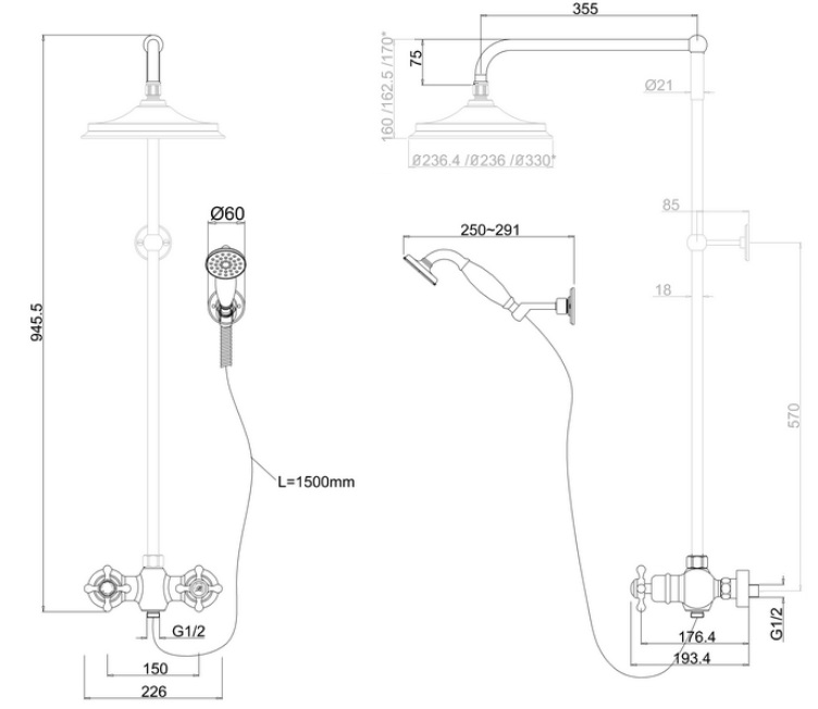 Długość ramienia: 355 mm