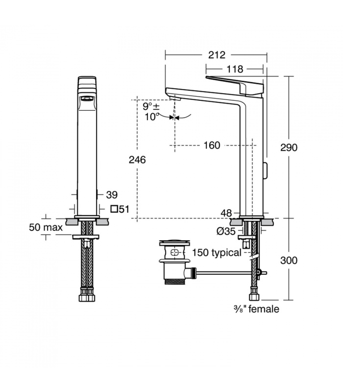 Bateria umywalkowa stojąca wysoka