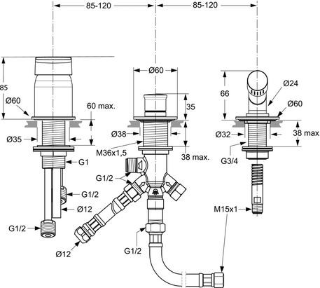 Zestaw odpływowo - przelewowy MULTIPLEX TRIO /do baterii