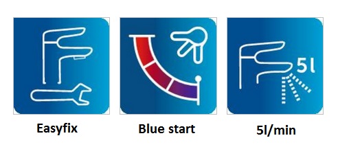 Oznaczenie BLUE START, uchwyt na wprost - wypływ wody zimnej