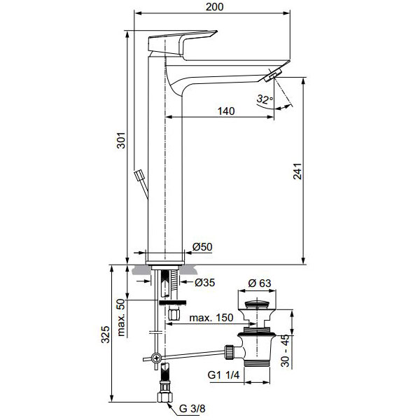 Ideal Standard Tesi Bateria umywalkowa stojąca wysoka - z korkiem A6573AA