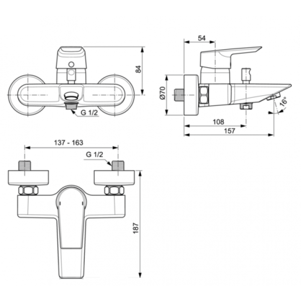 Ideal Standard Tesi Bateria wannowo-natryskowa ścienna A6583AA