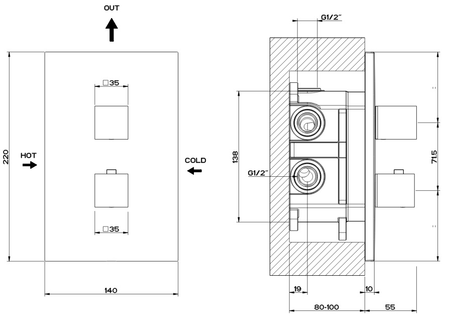 Gessi Rettangolo Bateria Natryskowa Podtynkowa Termostatyczna chrom 20182.031/ 20182031