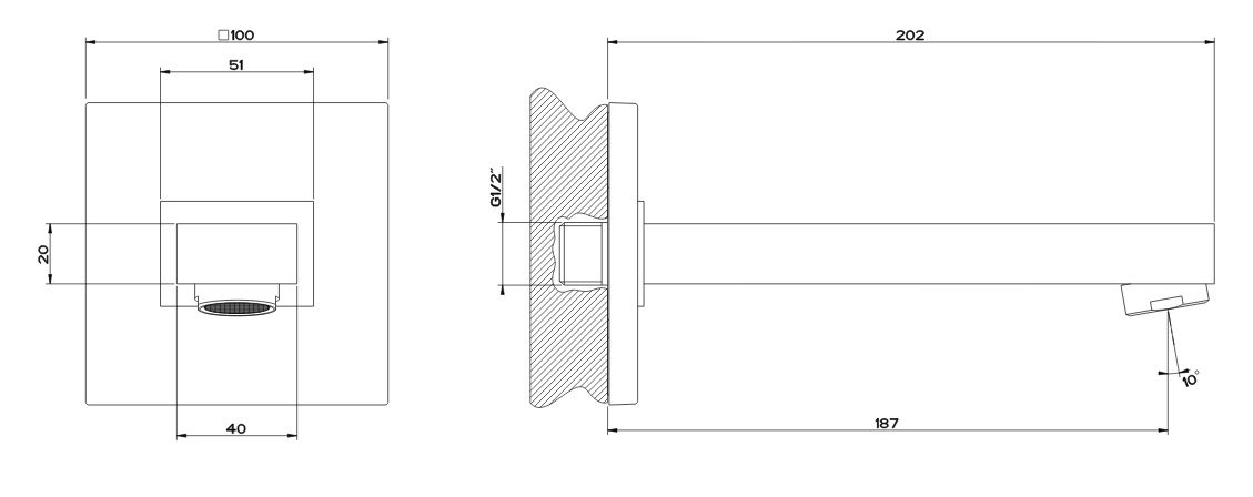 Gessi Rettangolo Wylewka wannowa ścienna chrom 20120.031 / 20120031