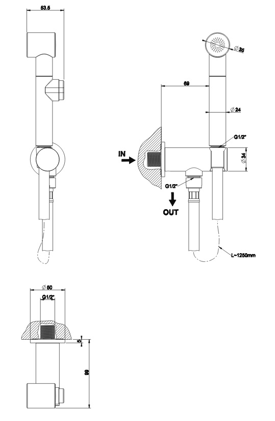 Bidetka z podłączeniem 1/2" oraz przyłączem kątowym w zestawie.
