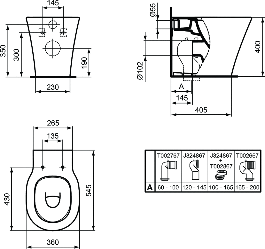 odpływ pionowy wymaga skompletowania z odpowiednim