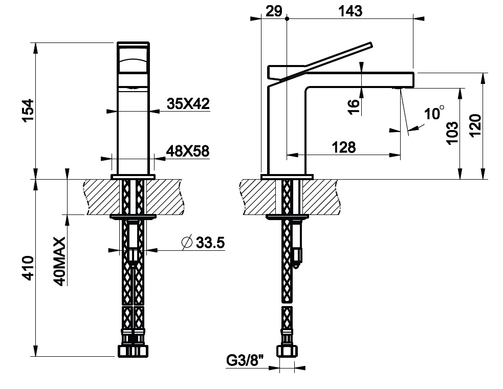 • Montaż: Jednootworowy