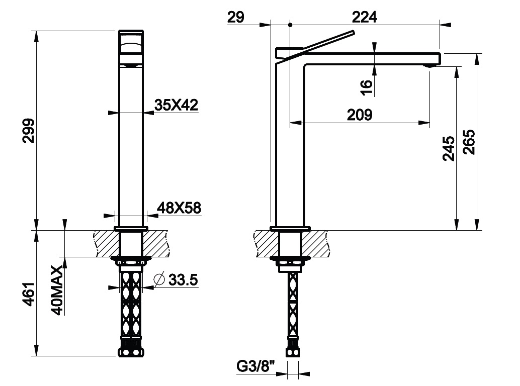 Gessi Rettangolo K Bateria Umywalkowa jednouchwytowa chrom 53004.031 / 53004031