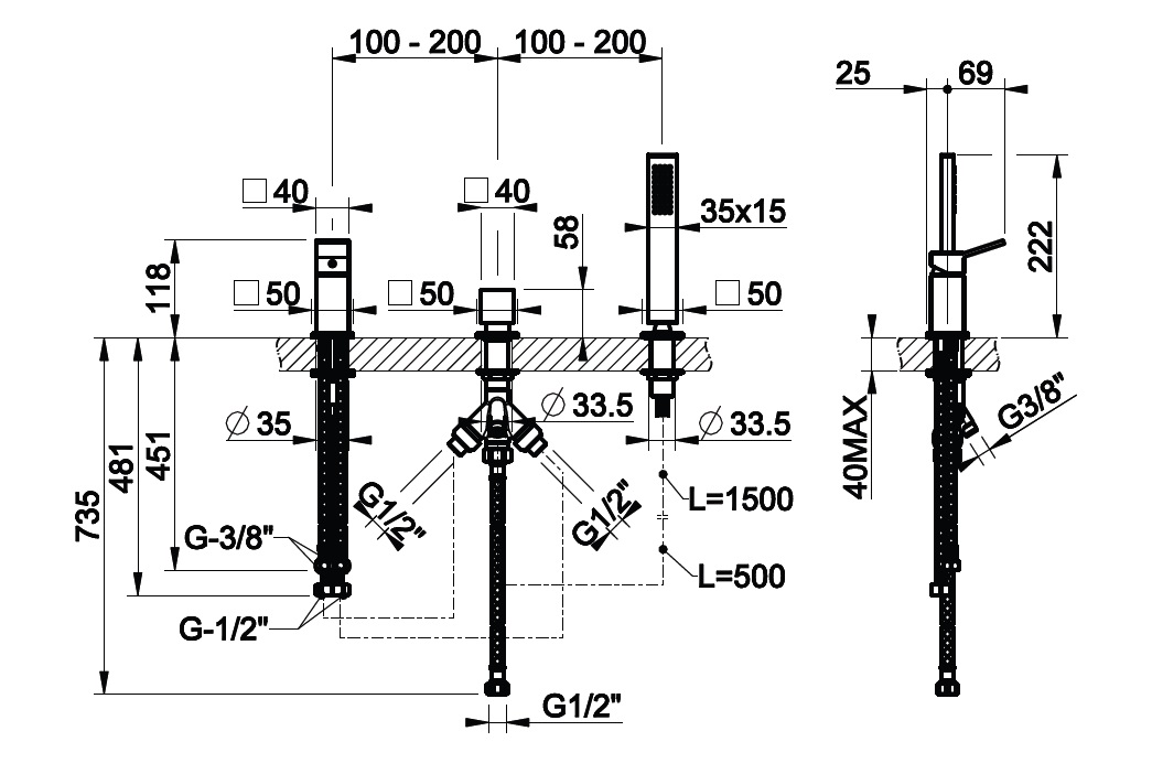 Gessi Rettangolo K Bateria Wannowa 3-otworowa Na Brzeg Wanny chrom 53043.031 / 53043031