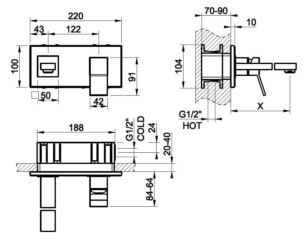 Gessi Rettangolo K Bateria umywalkowa podtynkowa - element zewnętrzny chrom 53084.031 / 53084031