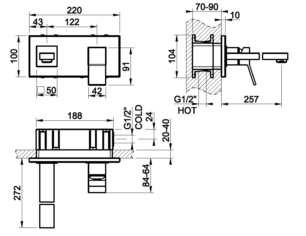 Rozstaw przyłączy: 122 mm