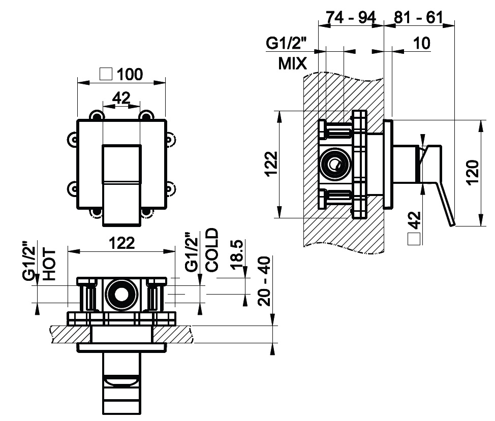 Gessi Rettangolo K Mieszacz podtynkowy, element zewnętrzny chrom 53109.031 / 53109031Kolor: Chrom