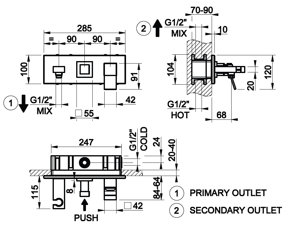 Gessi Rettangolo K Bateria Wannowo-natryskowa Podtynkowa chrom 53140.031 / 53140031Kolor: Chrom