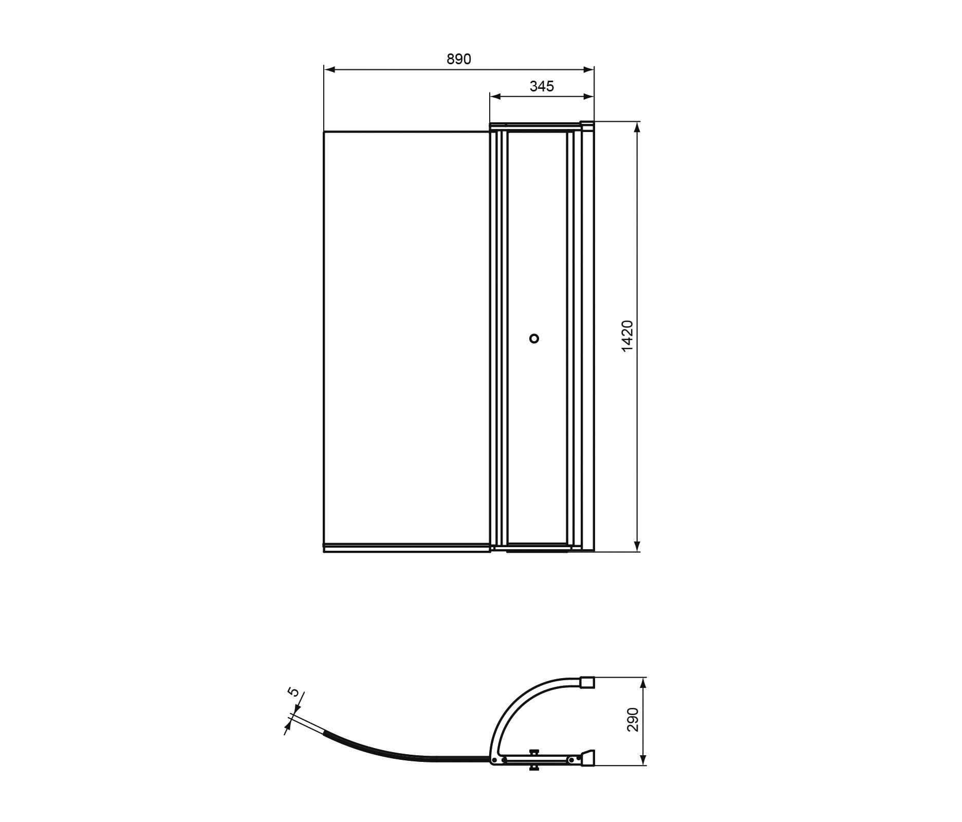 Otwierany 1 częściowy, dodatkowe mini drzwi. Profil aluminiowy, kolor srebrny. Ekran odwracalny lewy i prawy. Szkło hartowane przeźroczyste gr. 5 mm. Do skompletowania z wannami asymetrycznymi Connect Air: E1134 i E1135.