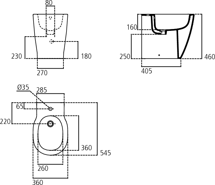 Wysokość bidetu dostosowana do potrzeb osób niepełnosprawych - 46 cm.