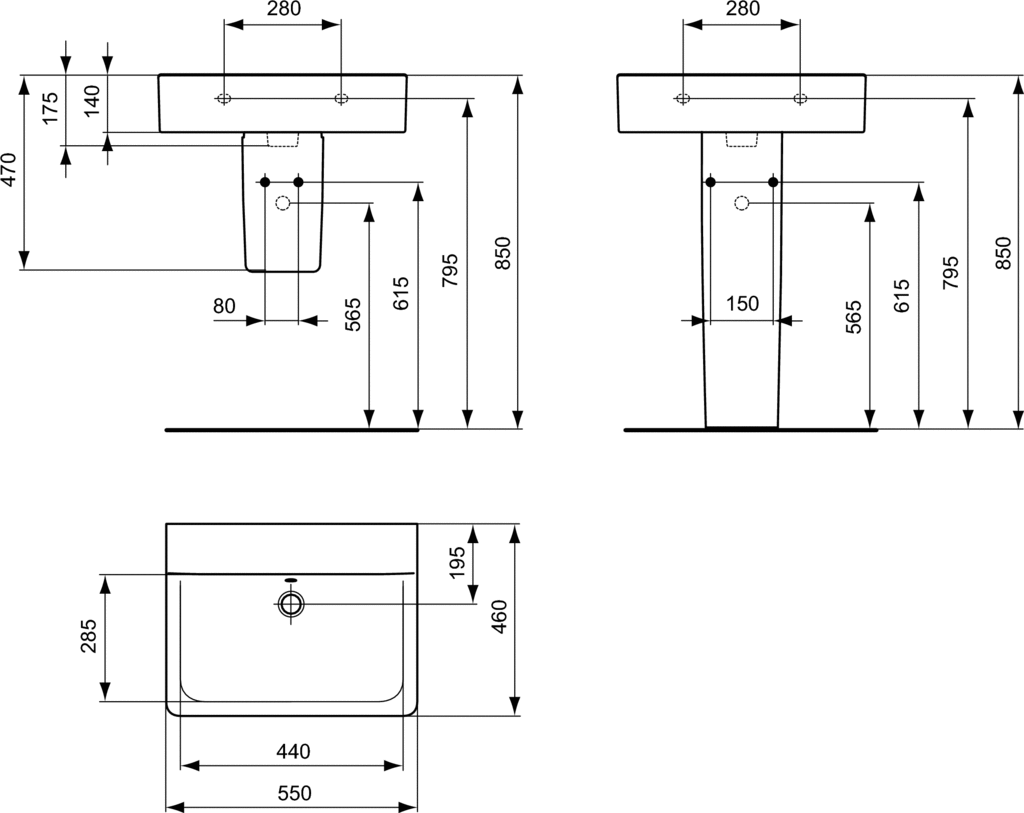 Ideal Standard Connect Umywalka CUBE 55 cm, bez otworu na baterię i z przelewem biała E8111MA
