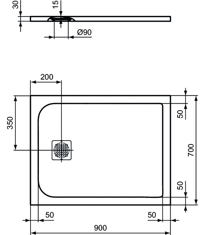 Odpływ Ø90mm, do skompletowania z syfonem.