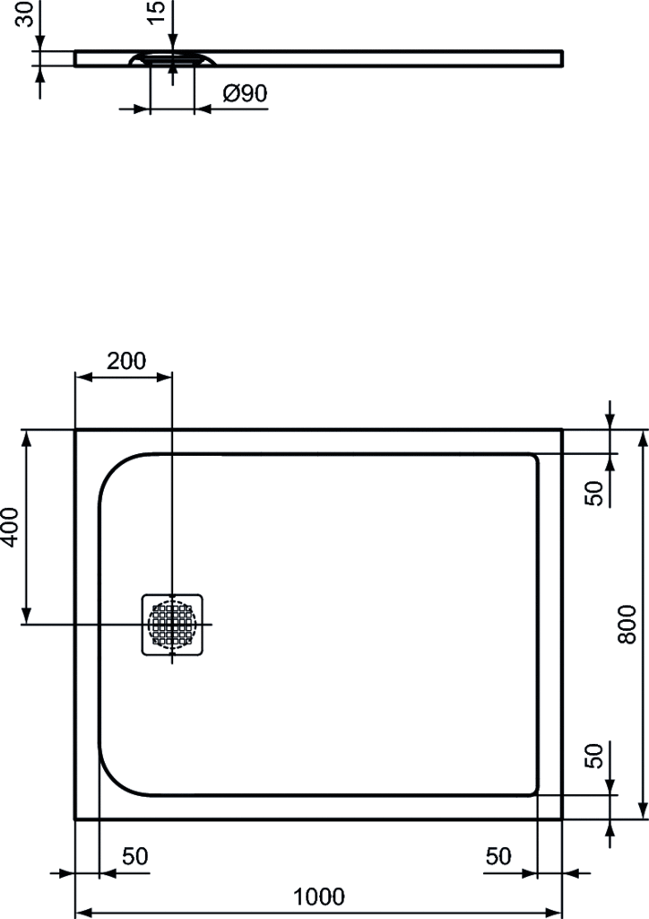 Odpływ Ø90mm, do skompletowania z syfonem.