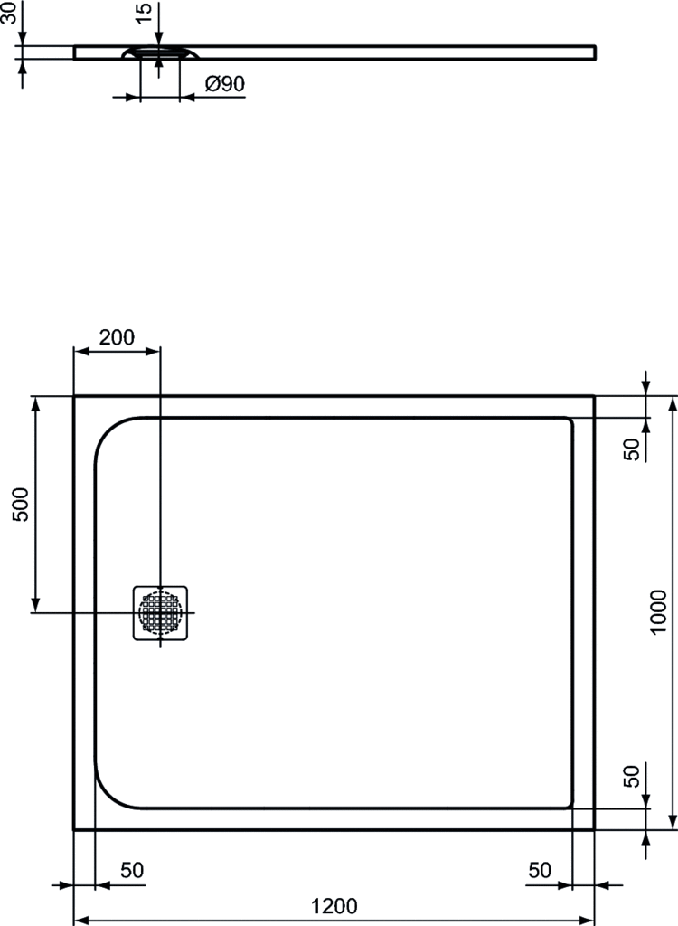 Odpływ Ø90mm, do skompletowania z syfonem.