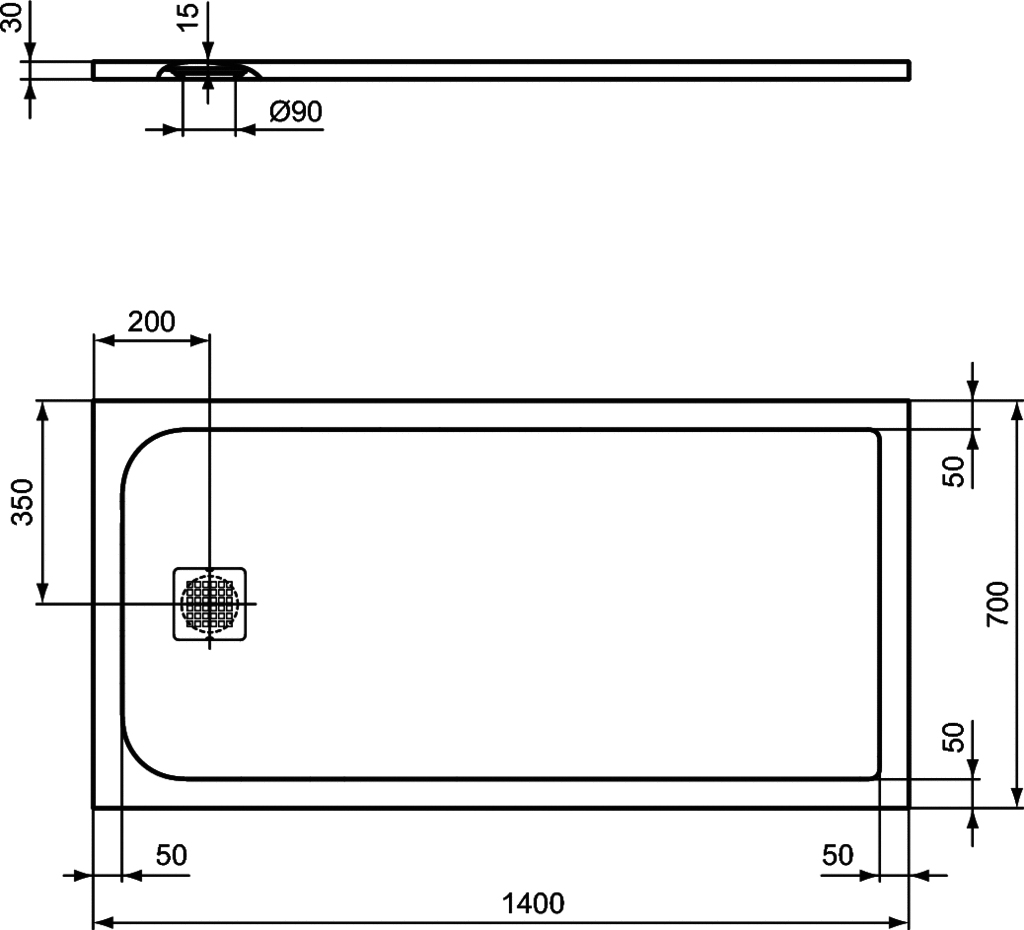Odpływ Ø90mm, do skompletowania z syfonem.