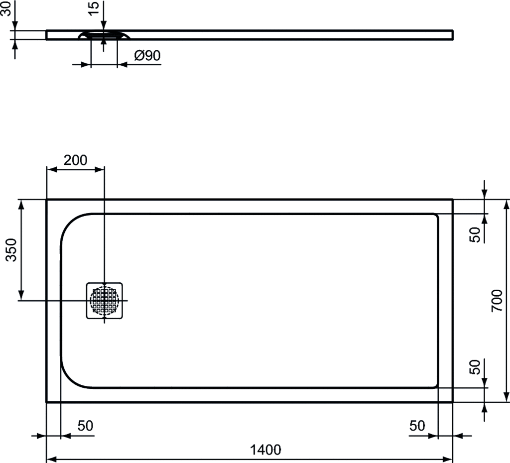 Odpływ Ø90mm, do skompletowania z syfonem.